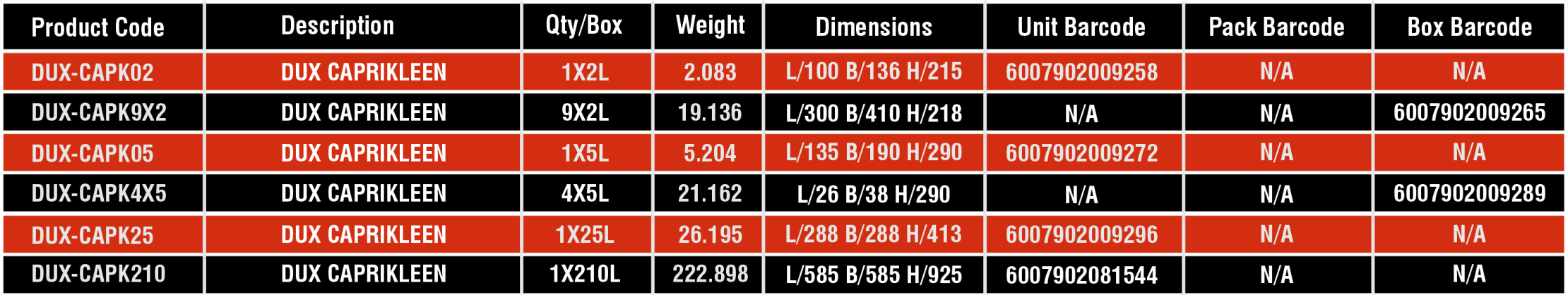 retail industry. DUX CAPRI KLEEN is suitable for the removal