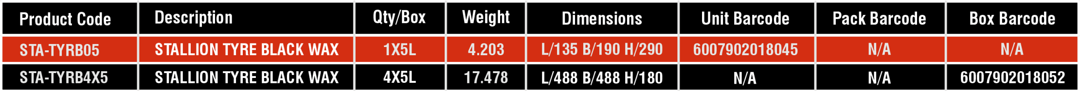 TYRE BLACK WAX is a ready to use wax polish formulated for the cleaning