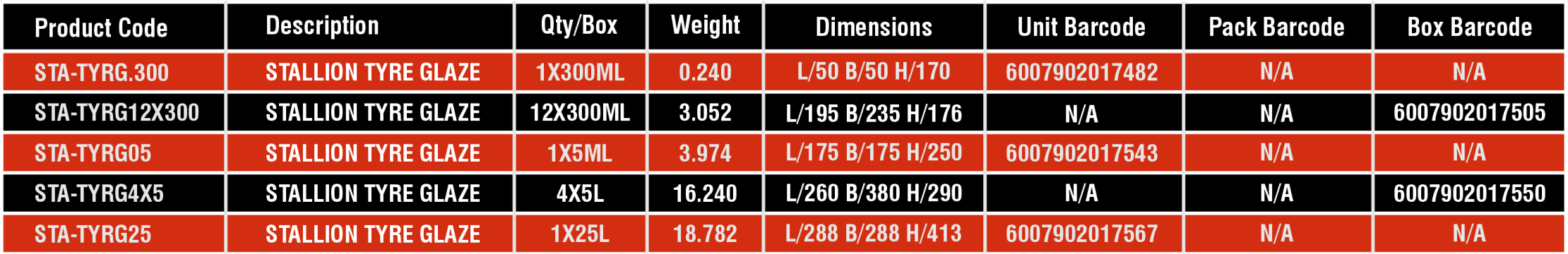 with rubber tyres. TYRE GLAZE N.S is a long lasting durable tyre polish,