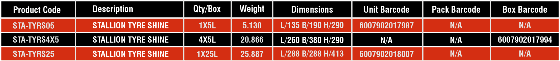 TYRE SHINE is a ready to use acrylic base self-shining sealer
