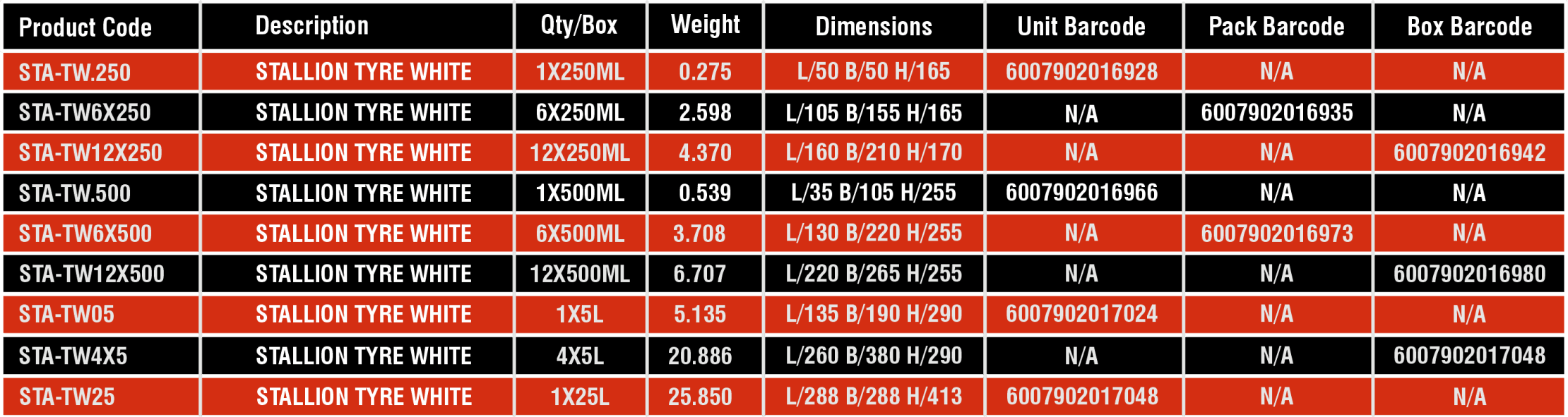 TYRE WHITE is a long lasting durable tyre polish, specially designed
